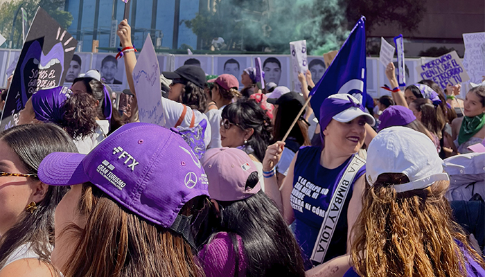 Inmediatamente, la estructura de la marcha resultó clara: los contingentes iban en el medio y en los extremos, ya sea saludando o caminando, estaban aquellas mujeres que apoyarían la causa a su propio paso, sin dejarse llevar por el resto de la marabunta. La mayoría de las mujeres reunidas eran jóvenes, pero ocasionalmente se cruzaba en nuestra línea de visión una cabellera blanca que gritaba con la misma fuerza y convicción que las demás. Otras, eran madres que llevaban a niñas pequeñas (de unos seis años) agarradas de su mano y algunas de las niñas cargaban su propio cartel. Todas, viendo hacia adelante, con la frente en alto y cantando al unísono: “NI UNA MÁS, NI UNA MÁS. NI UNA ASESINADA MÁS”, “NO SOMOS UNA, NO SOMOS DIEZ. PINCHE GOBIERNO, CUÉNTANOS BIEN”, o la más dolorosa por asemejarse a un sueño utópico, “PORQUE VIVAS SE LAS LLEVARON, VIVAS LAS QUEREMOS”.