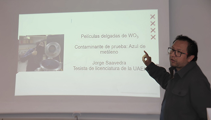 En su exposición explicó que la fotocatálisis heterogénea y la adsorciónson dos técnicas clave que pueden funcionar para la remoción eficiente de agentes contaminantes en el agua, recurso natural que es vital para animales, plantas y los seres humanos.