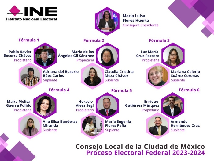El Consejo General del INE nombra a las y los consejeros electorales, propietarios y suplentes, que conforman cada uno de los 32 Consejos Electorales Locales, que son los órganos delegacionales del Instituto Nacional Electroral en cada una de las entidades federativas. Ellas y ellos son quienes van a participar en la organización del proceso electoral 2023-2024.