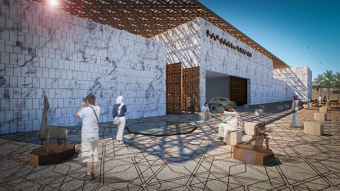 El museo, que se encuentra en una zona semiindustrial en la periferia de Sharjah y tiene como contexto inmediato un distrito residencial de baja densidad, se llenó con una estructura monolítica de poca altura que cubre toda la huella de la trama, un complejo de apariencia sólida que se asemeja a una fortaleza. El museo está diseñado como una masa porosa, tallado meticulosamente para crear patios, callejones y pasillos, entrelazados con las galerías y el descanso.