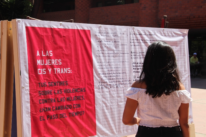 Esta intervención artística de Lorena Wolffer en la explanada central de nuestra IBERO invita a las mujeres cis y trans a compartir su sentir sobre esta problemática