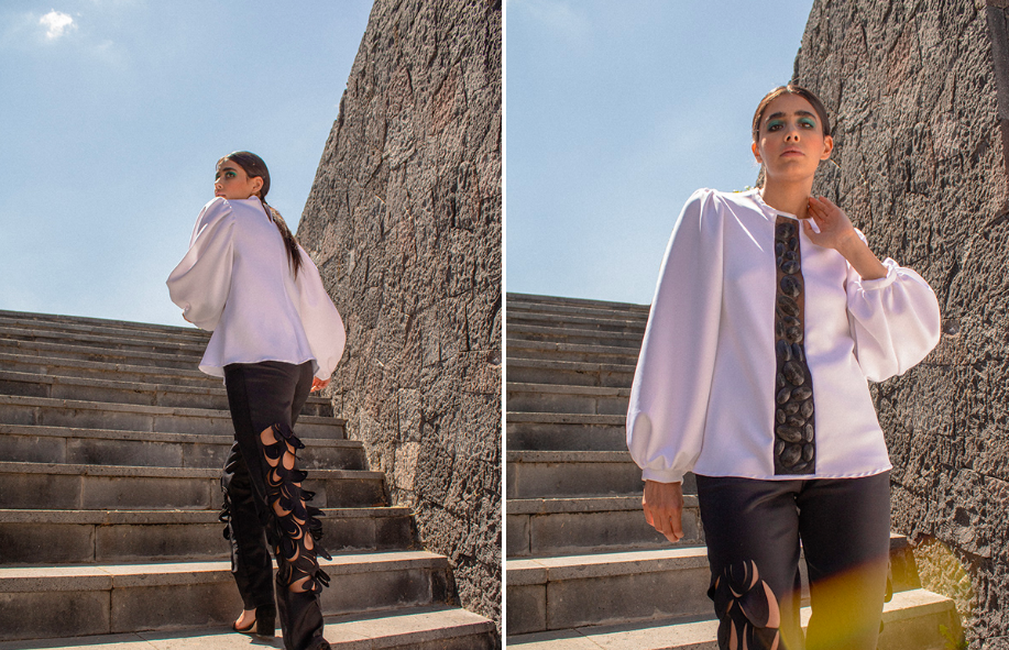Ana Paola López se inspiró en la conexión existente entre el usuario y la tecnología, en “cómo desarrollamos relaciones con objetos y su influencia en nuestra realidad. La colección busca contrastar las similitudes entre las formas orgánicas del ser humano y las siluetas perfectas del automóvil”, expresó.