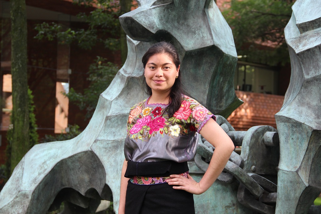 • Elizabeth Hernández, con la vestimenta tradicional de Zinacantán, Chiapas (Valentina González/IBERO).