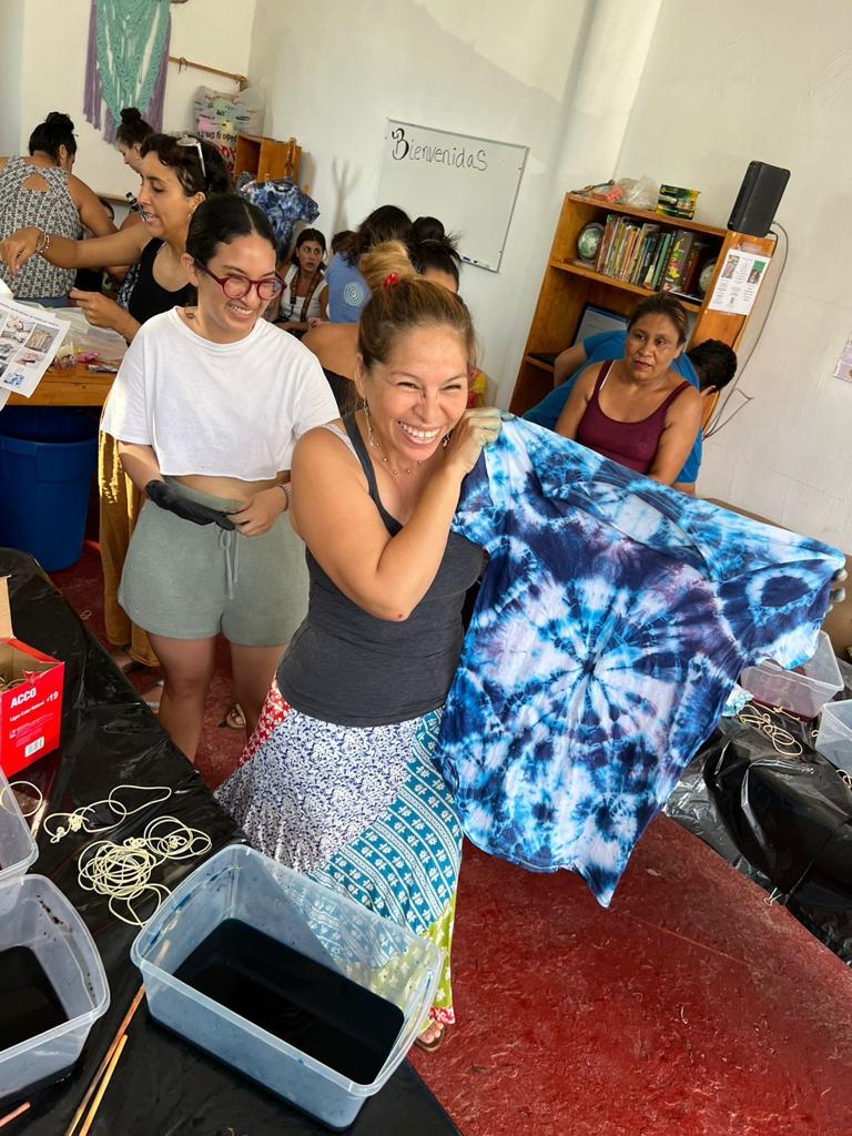 De las primeras actividades que hicieron fue un taller deTie-dye(entintando de playeras), en el que con ayuda y creatividad de nuestras alumnas reutilizaron materiales para empaquetar las prendas. Además, crearon una serie de móviles para techo fabricados con componentes sustentables.