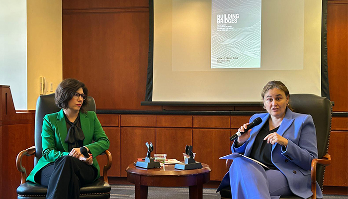 El libro Building Bridges: Contemporary Perspectives on Gender, Sexuality and International Human Rights Lawes una apuesta por el conocimiento que se construye de manera colectiva, en el que participaron 33 autoras y autores, con el objetivo de renovar una conversación sobre los debates actuales en materia de género y sexualidad en el derecho internacional, desde ángulos diversos y novedosos, explicó la Dra. Alma Luz Beltrán y Puga Murai, una de las editoras del volumen y académica de tiempo completo en el Departamento de Derecho de la IBERO. La Dra. Beltrán presentó el volumen el 17 de octubre en la George Washington University con la Decana Rosa Celorio.