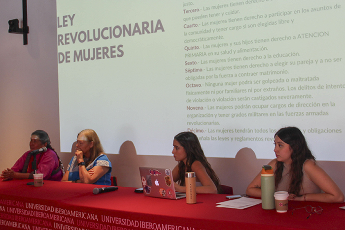 La lucha histórica de las mujeres indígenas en los movimientos sociales y medioambientales de México, la participación activa que ejercen en la política y la lucha por la igualdad de sus derechos, fueron algunos tópicos que se discutieron en el conversatorio “Dignidad y Rebeldía”, efectuado en el CAU de la IBERO, como parte de las actividades del 8M. Claudia Torres Roux, activista de la Red Movimiento y Corazón Zapatista, así como Magdalena García Durán, mazahua activista por los derechos indígenas, compartieron experiencias dentro del alzamiento zapatista y del movimiento social de San Salvador Atenco para reivindicar los derechos indígenas y defender sus territorios.