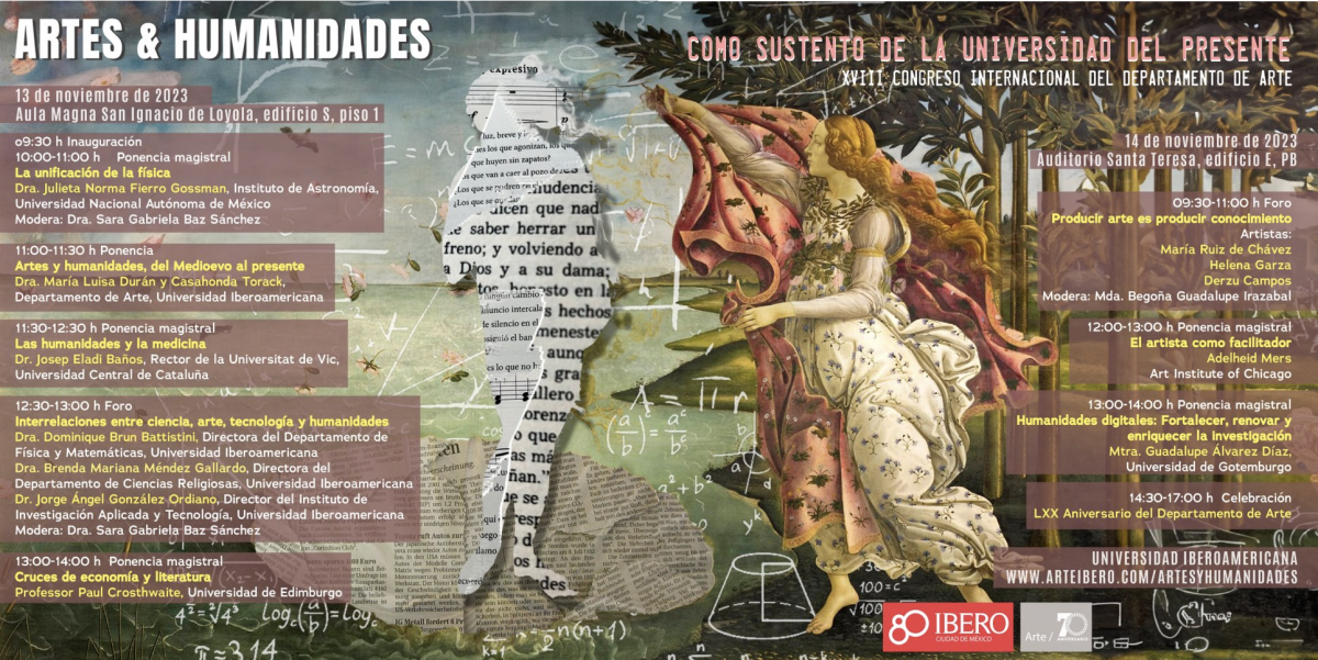 Ambas ponencias nos dan luz de cómo el surgimiento de las universidades y el avance de la ciencia y las humanidades permitieron el desarrollo del arte. En otro texto, abordaremos a profundidad la explicación de la Dra. Fierro, quien de forma amena y con ejemplos aterrizados a nuestro contexto, narró cómo ha sido launificación de la física y cuáles son los retos que enfrenta la física moderna. ¡No te pierdas el XVIII Congreso Internacional del Departamento de Arte, que hoy ofrecerá otras valiosas ponencias!