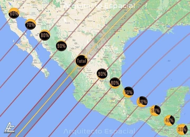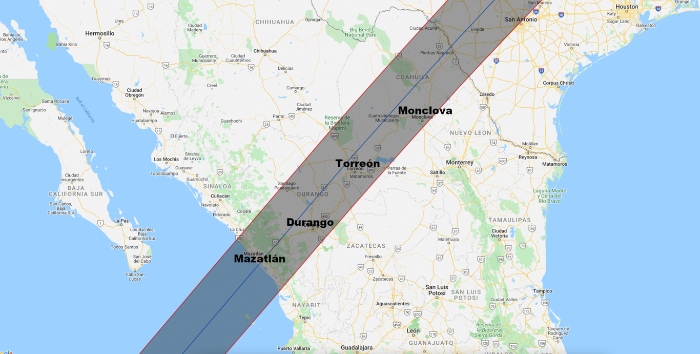 En México, la franja de totalidad del eclipse del 8 de abril pasará por Sinaloa, Durango y Coahuila.