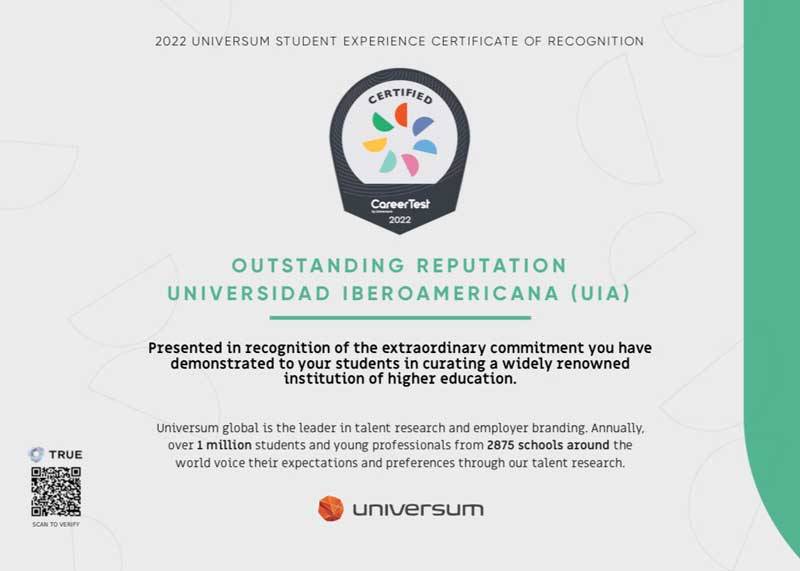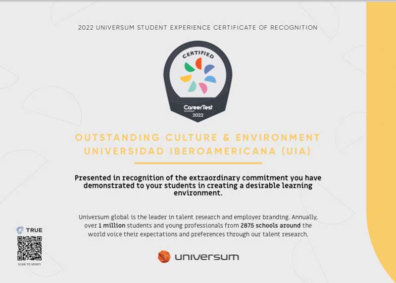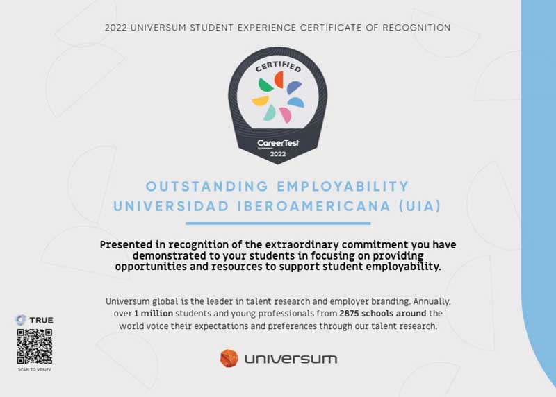 Universum, una famosa reclutadora de talento global con sede en Estocolmo, Suecia, que cada año realiza una encuesta a más de un millón de estudiantes de 2,875 universidades de todo el mundo, otorgó cuatro reconocimientos a la Universidad Iberoamericana CDMX, que salió calificada positivamente por su alumnado en los rubros de: Empleabilidad, Ambiente Cultural, Reputación y Oferta Institucional Sobresalientes.