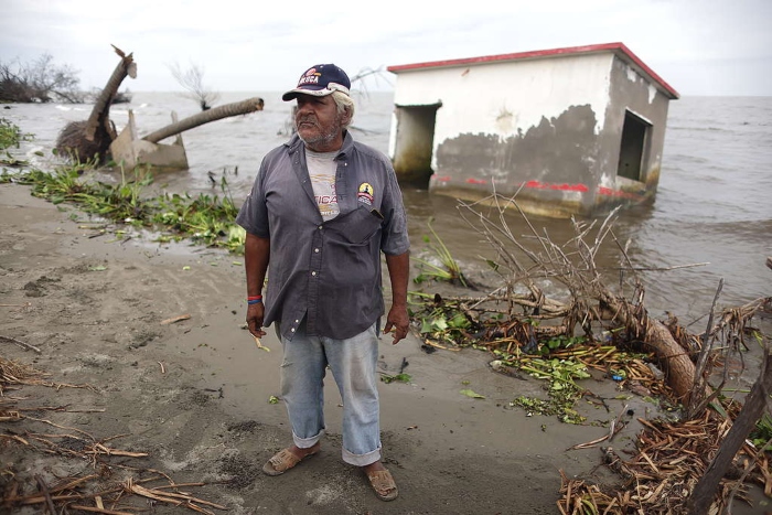 Con el fuerte incremento en la temperatura del norte del planeta y el consecuente derretimiento de los casquetes polares, el nivel medio del mar está subiendo, por lo que se prevé que las líneas de costa se recorran dependiendo de la geografía de cada lugar, indica la especialista. Aquí en México, por ejemplo, “las zonas más bajas están en Tabasco, que es una planicie de inundación que viene de los ríos Grijalva y Usumacinta”. De hecho, agrega, en ese estado hay comunidades que ya necesitan ser reubicadas, y ahí se encuentra El Bosque, la primera comunidad mexicana que ha sido comida por el mar, en imagen de Gustavo Graf, de Greenpeace.