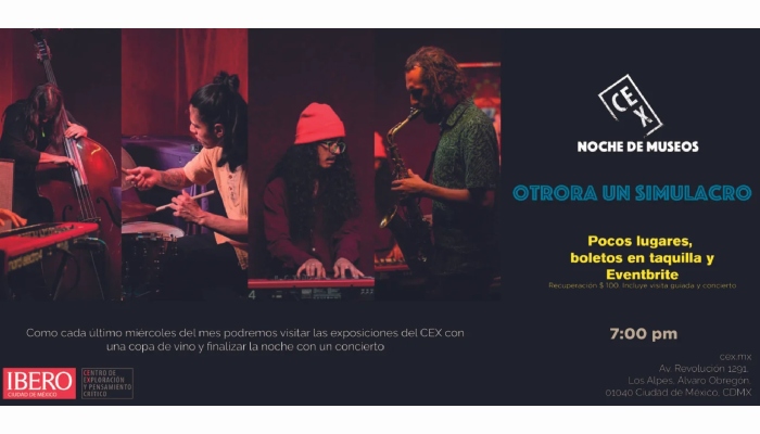 El Centro de Exploración y Pensamiento Crítico de la Universidad Iberoamericana continúa con su participación en el programa cultural Noche de Museos del Gobierno de la Ciudad de México, y alista el primero de estos eventos de 2025 con la presentación del grupo musical Otrora un Simulacro, originario de la Ciudad de México.