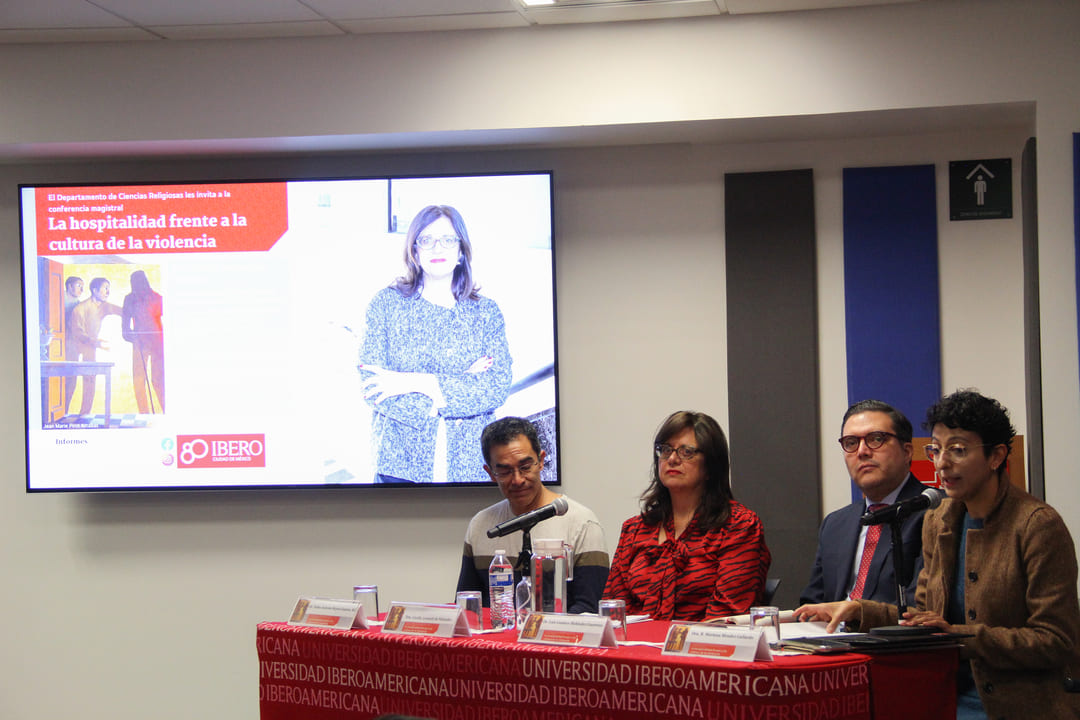 En una realidad donde todas y todos estamos sumergidos de manera alarmante en lo que se ha denominado Cultura de la Violencia,es necesario encontrar nuevosmétodos para poder combatirla o por lo menos disminuirla, ya que no se trata de tolerarla o acostumbrarnos a ella, pues eso provocaría un ciclo de odio del cual ya la mayoría de la población está harta, así lo considera la Dra. Cecilia Avenatti de Palumbo, Directora del Seminario Interdisciplinario Permanente de Literatura, Estética y Teología, quien fue invitada por el Departamento de Ciencias Religiosasde la IBERO, para ofrecer la Conferencia Magistral:La hospitalidad frente a la cultura de la violencia.