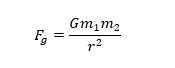 Las partículas tienen masasm1ym2,Ges una constante (se llama constante gravitacional),res la distancia entre las masas, yFges fuerza de atracción entre las masas.