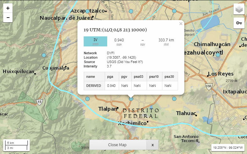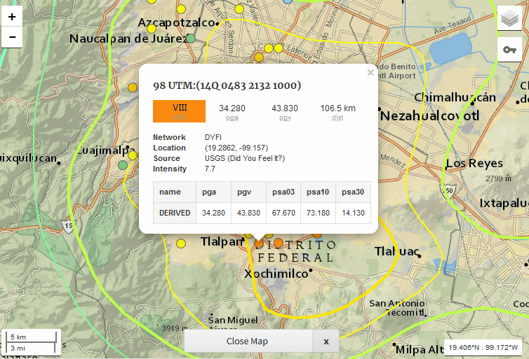 Como referencia adicional, el terremoto del 19 de septiembre de 1985 se situó aproximadamente a 250 km de la Ciudad de México y tuvo una magnitud aproximada de 8 grados Richter.3