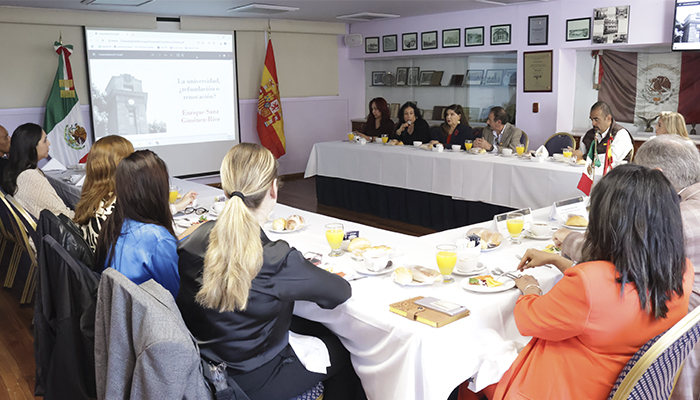 En una mesa multicultural, organizada por el Grupo Especializado de Arte y Cultura e Instituciones Educativas de la Canaco-CDMX, presidido por el Lic. Alfonso Carrasco, el exrector de Comillas habló con líderes empresariales y educativos sobre la importancia de revisar la marcha de la universidad como institución, para hacerla volver a sus principios originales y, al mismo tiempo, adaptarla a los nuevos tiempos.