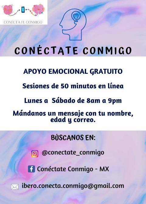 Conéctate conmigo es el proyecto realizado por alrededor de 30 miembros de la Comunidad IBERO (estudiantes y egresados), con la finalidad de brindar apoyo emocional gratuito a cualquier persona afectada por el aislamiento.