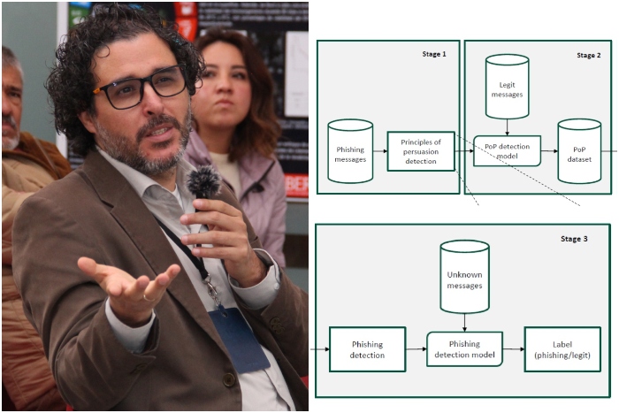 Este equipo de investigación trabaja en la solución ante la llegada de correos electrónicos maliciosos que, a través del engaño, logran que las personas que los reciben compartan información privada (al dar clic en algún link, por ejemplo); estos mensajes se conocen como phishing. Las y los investigadores proponen un cambio de paradigma para detectar los principios de persuasión de este tipo de mensajes, con la perspectiva de “cómo se comunica” en lugar de “qué se comunica”, mediante técnicas de aprendizaje automatizado ymachine learning. Hasta ahora, ya tienen armado un conjunto de datos organizados y estructurados –undataset- de estos principios de detección.