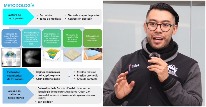 El proyectoEvaluación de cojines de descarga para usuarios de sillas de ruedas fabricados con base en los mapas de presión en la interfaz usuario-cojínfue presentado por el Dr. Erik René Bojorgez Valdez.