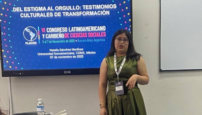 Natalia Sánchez Martínez, egresada en Ciencias Políticas y Administración Pública de la IBERO presentó su investigación“Del orgullo al estigma: testimonios culturales de transformación”en el Congreso Latinoamericano y Caribeño de las Ciencias Sociales de FLACSO 2025.