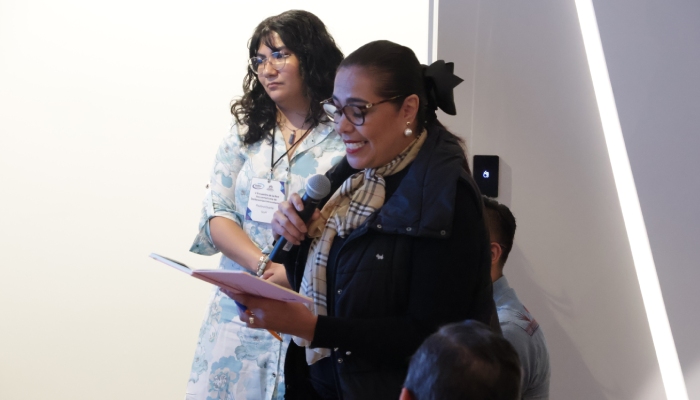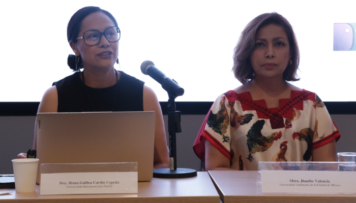 La Mtra. Jhazibe Valencia, académica de la Universidad Autónoma de la Ciudad de México y moderadora de la mesa, dio uso de la palabra a las Dras. Laura Pedraza y Celia Arteaga de la IBERO CDMX, quienes compartieron el uso del “ Fobiatómetro ”, herramienta para visibilizar violencias y desigualdades de género, especialmente hacia la comunidad LGBTQ+.