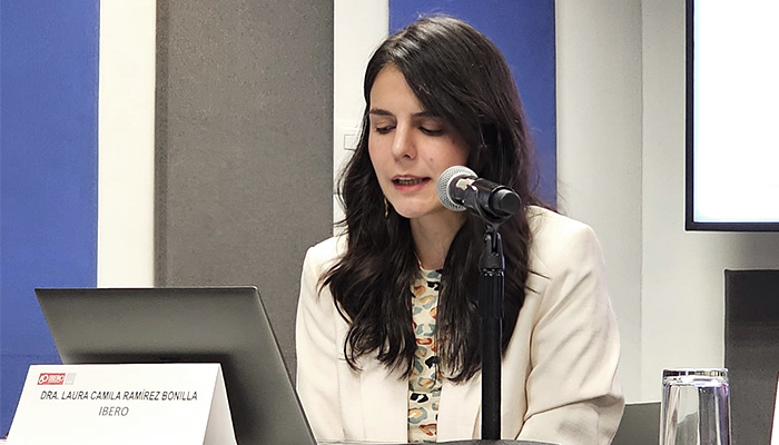 La directora del Departamento de Historia de la IBERO, Laura Camila Ramírez Bonilla, durante la conferencia
