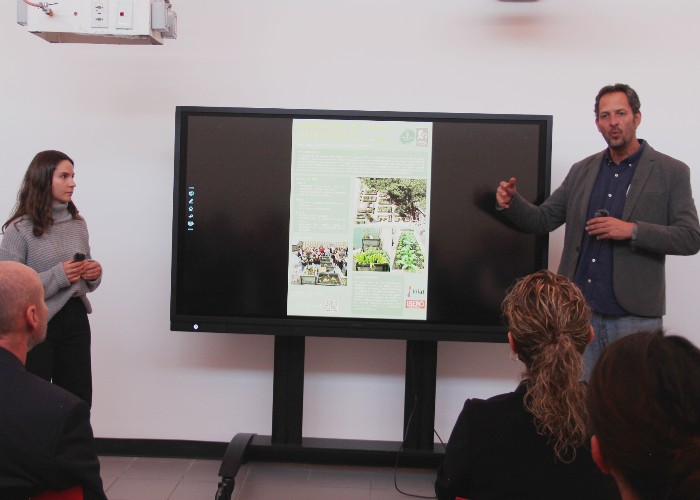 El proyectoConstrucción del Huerto José de Acosta, S. J. Espacio Productivo de encuentro comunitario e investigaciónfue presentado por el Mtro. Juan M. Casillas Pintor, del Departamento de Arquitectura, y la Ing. Miranda Ori Orlansino, asistente de investigación y coordinadora del huerto.