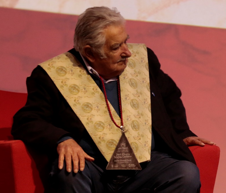 • Recientemente se le otorgó el Doctorado Honoris Causa al ex presidente Uruguayo José Mujica, quien porta la Beca. (Foto: Alberto Hernández)