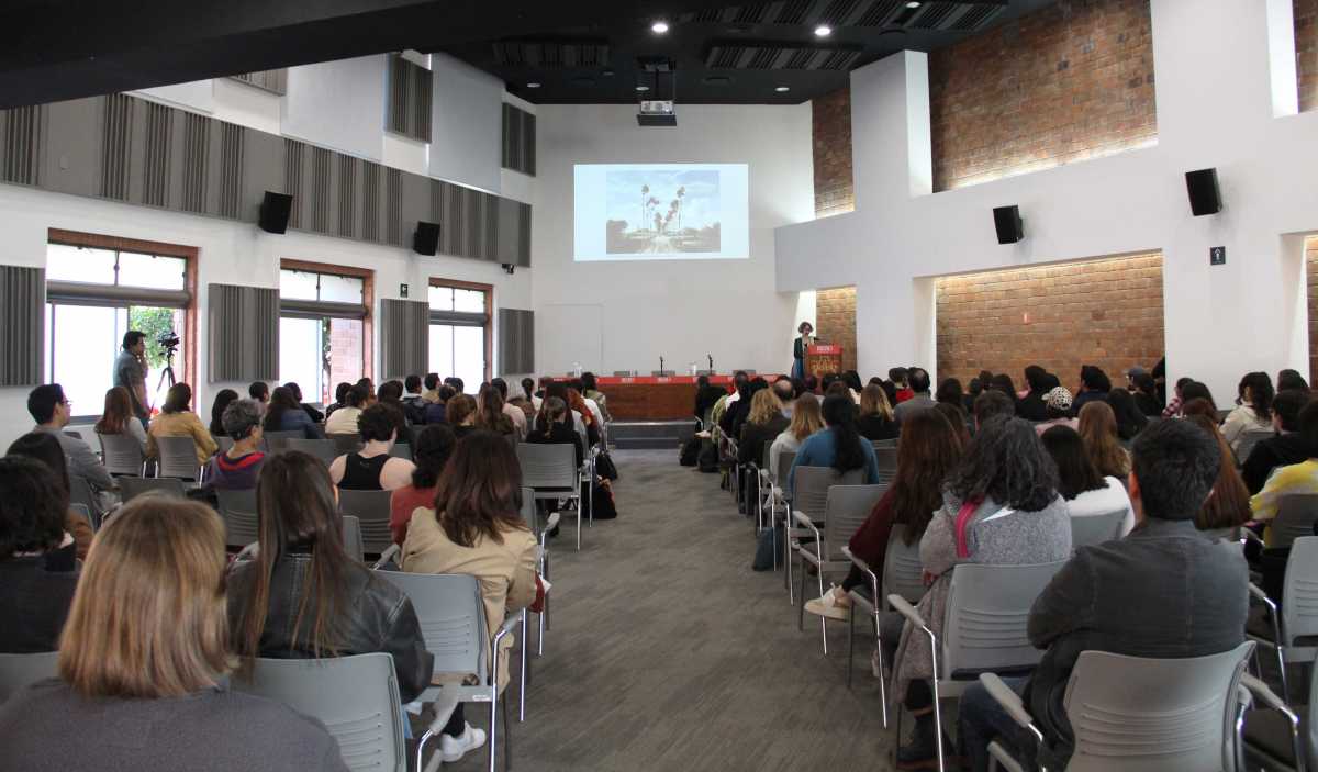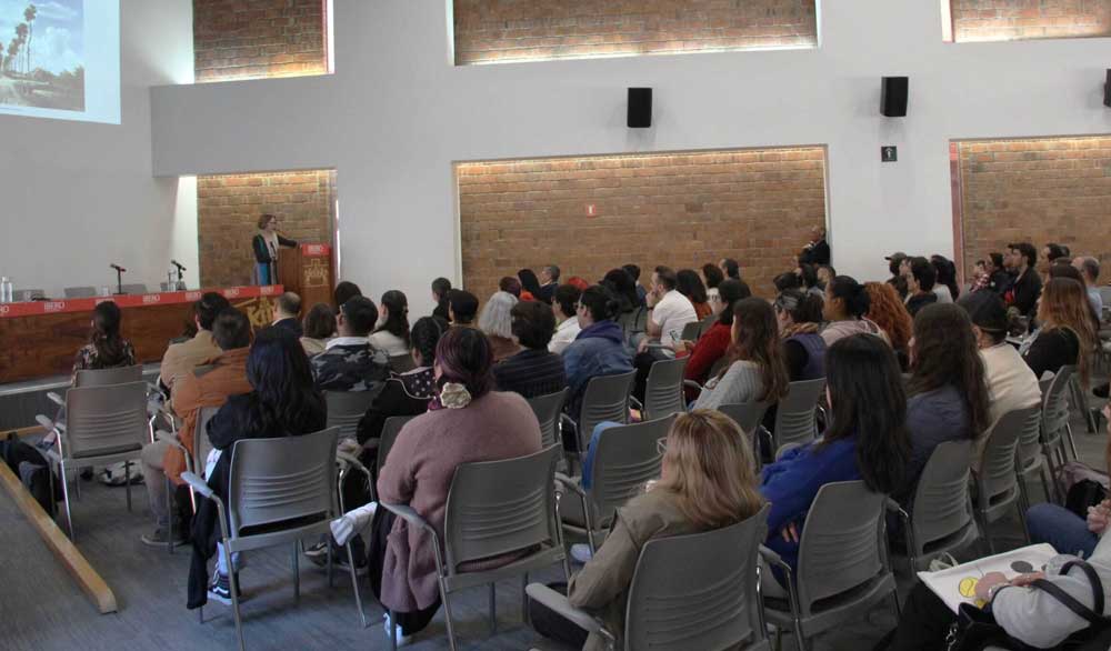 Estudiantes del Departamento de Diseñode nuestra IBERO y de otras universidades, llenaron el Auditorio Crescencio Ballestero de nuestro campus para escuchar a la diseñadora estadounidense, quien explicó que " el color es diseño sensorial, las palabras con las que lo describimos pueden impactar en nuestro tacto, en nuestra audición y eso tiene mucho que ver con las emociones y el tipo de sentimientos que podemos transmitir a las personas".