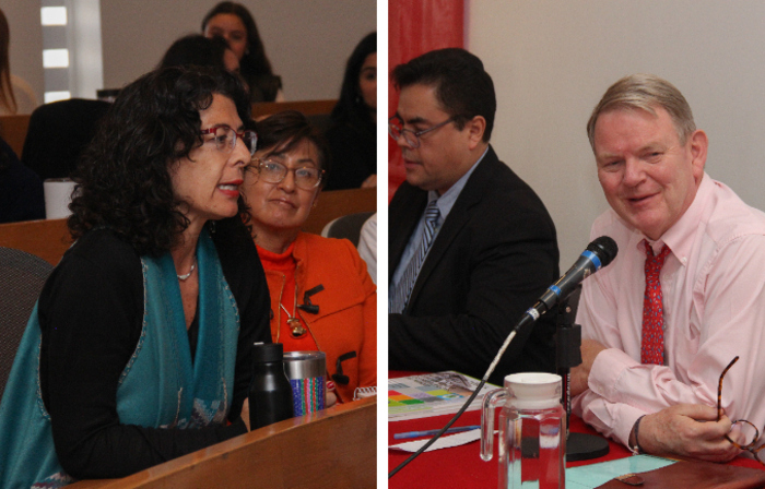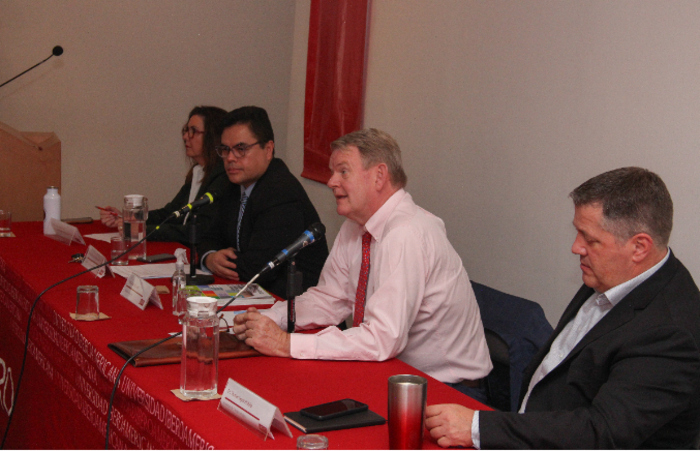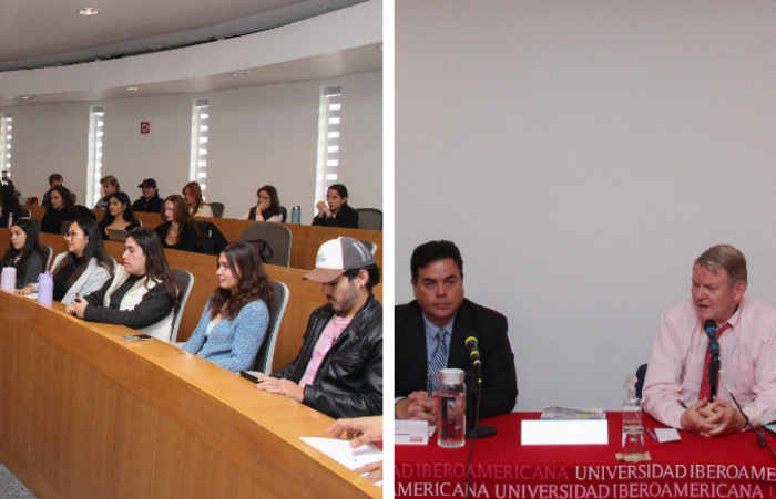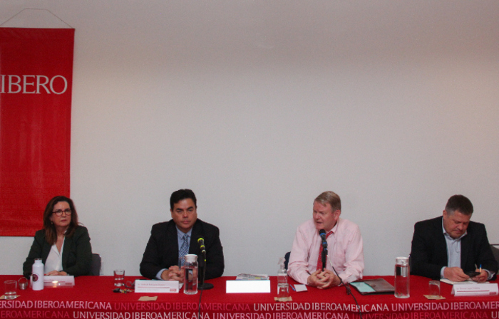 Entre los Académicos de la IBERO presentes en la ponencia estuvieron Thomas Legler y Pía Taracena, quienes participaron con comentarios muy acertados y enriquecieron la interlocución con el Embajador sobre los riesgos que se vislumbran si Donald Trump regresa a la Presidencia de Estados Unidos y la falta de un sentimiento colectivo regional en América del Norte. Abelardo Rodríguez Sumano se encargó de moderar la mesa de preguntas.