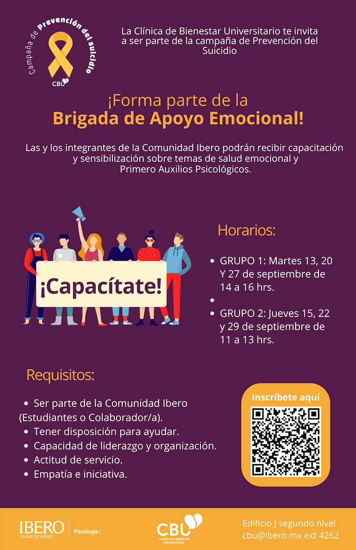 Además de expertas y expertos que participan en estaBrigada de apoyo emocional, el Dr. Fernando de la Fuente, académico Departamento de Reflexión Interdisciplinaria, invitó a la comunidad a convertirse en guardianes y guardianas para la prevención del suicidio, y asistir a capacitaciones para acompañar este proceso y mejorar el espacio que es de todos y todas: nuestra IBERO.