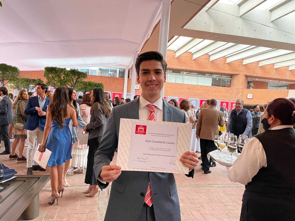 Axel Castañeda, que se gradúa de Administración de Negocios Internacionales, confiesa que disfrutó muchísimo su paso por la Ibero, pero “fue complicado por la pandemia, creo que llegó un punto, no quiero decir de depresión, pero fue muy triste el no poder ver a mis amigos durante año y medio porque una parte importante es la convivencia, las relaciones que generas en la universidad, pero hoy me siento muy feliz de haber terminado”.