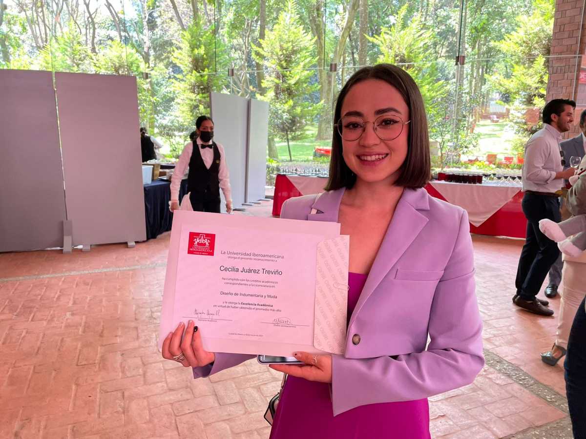 Cecilia Juárez, quien fue reconocida como la egresada con mejor promedio de Diseño de Indumentaria y Moda, dice que “valió la pena el esfuerzo y profesionalmente le gustaría seguir diseñando y cambiar un poco la industria de la moda y que implique un comercio más justo”.