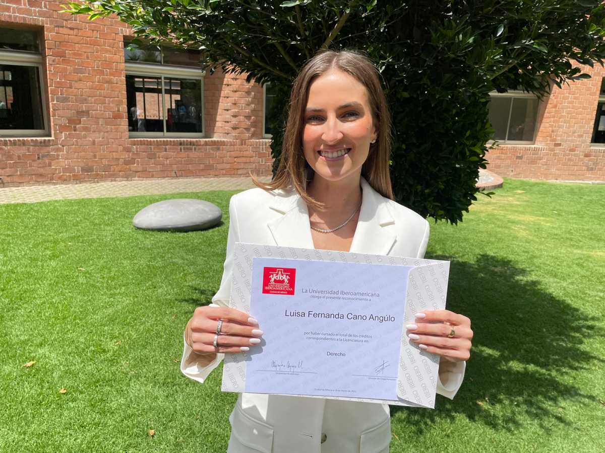 Arropada por toda su familia, quienes incluso la cargaron para celebrar su egreso, Luisa Fernanda Cano nos comparte con mucha felicidad que siempre supo que estudiaría Derecho, “desde chiquita era la abogada de mi salón”, lo que sigue para ella es enfocar su carrera “en la parte de los negocios”.