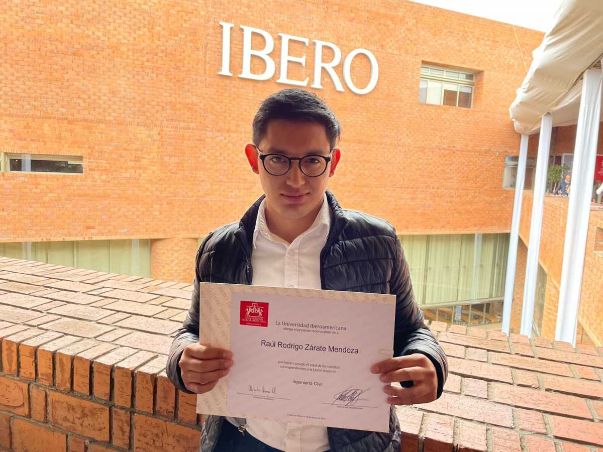 Rodrigo Zárate, egresado de Ingeniería Civil, recuerda como desafortunado el tiempo de la pandemia "porque perdí algunos laboratorios que eran importantes, pero al fin y al cabo se solventó y pude aprender esos temas con las herramientas que tenía a la mano y que me ofreció la universidad”. Sobre sus años en la escuela, dice que “representan una buena experiencia, no sólo por el aprendizaje, sino también por las personas”. Con relación a su carrera: “Mis materias favoritas fueron diseño estructural e ingeniería sísmica, profesionalmente me interesa el área de estructuras, cimentaciones y mecánica de suelos”.