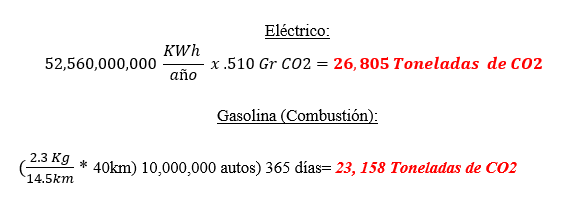 Suponiendo el cambio vehicular de 10,000,000 de autos de uso particular tradicional (gasolina) por autos eléctricos.