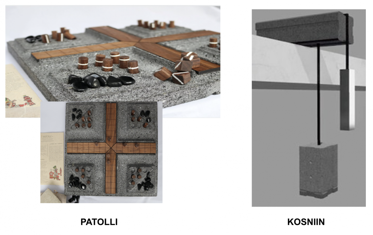 Patolli. Este antiguo juego mesoamericano de azar y apuestas era practicado por teotihuacanos, toltecas, mayas, aztecas y aunque su diseño podía variar según la región, su significado estaba relacionado con el calendario. Estudiantes: María Pérez, Ileana Neme y Manuel Viniegra.