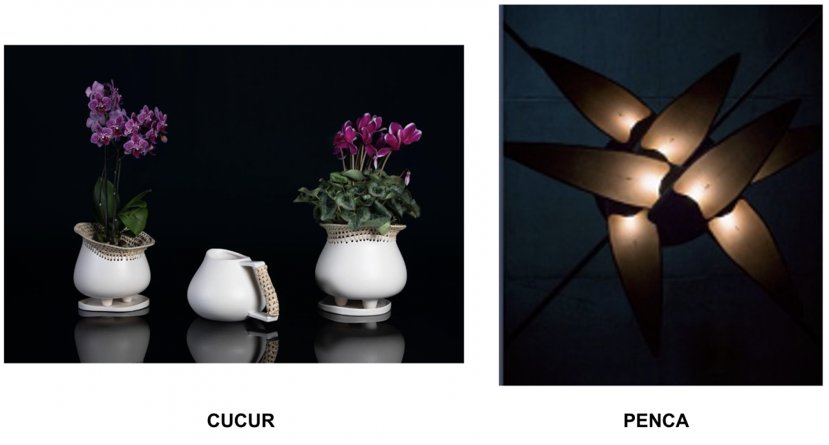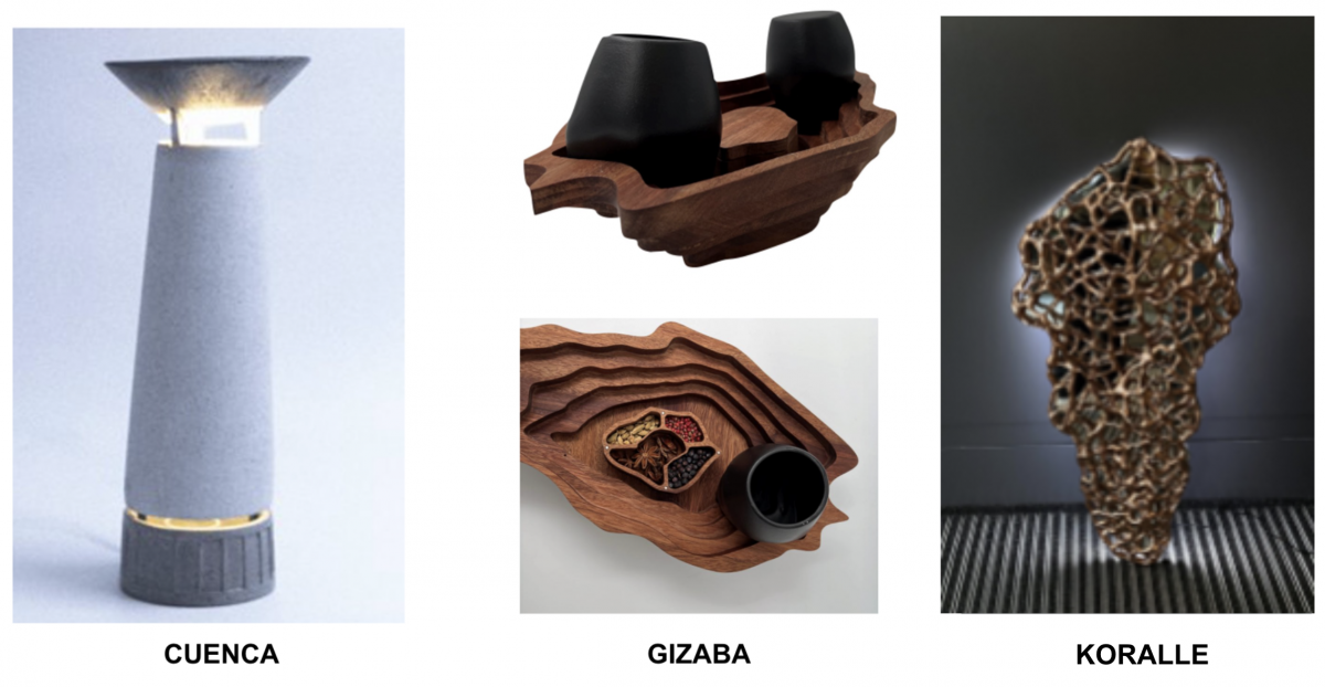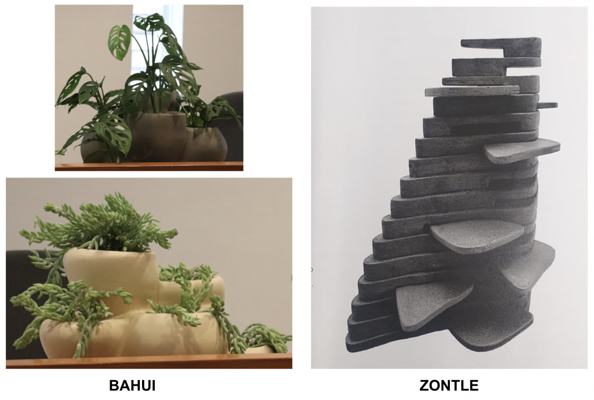 Bahui. Es una maceta cuyo diseño retoma la mitobotánica zapoteca, en la cual la naturaleza es sagrada, las plantas, los hongos, los animales y los fenómenos naturales. Asimismo, se inspira en la similitud que tienen las cascadas de Hierve el Agua en Oaxaca y la belleza del hongo Melena de León, uno de los más curativos del mundo. Alumnos: Manuel Álvarez, Ernesto Belchez y Diego Blanco.