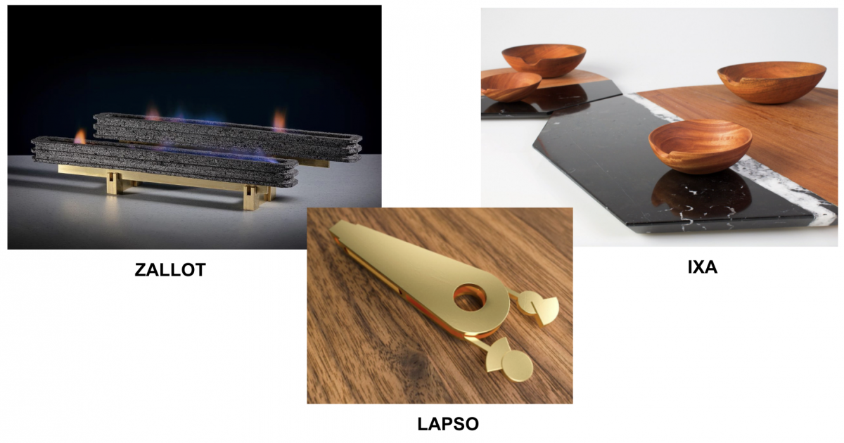 Ixa. La propuesta, que incluye bandejas giratorias y bowls, se inspira en el movimiento que ocurre en la Tierra durante los temblores, los cuales han tenido grandes implicaciones en la historia de México. Alumnas y alumnos: Xóchitl Cruz, Irene Dichi y Alejandro Hollander.