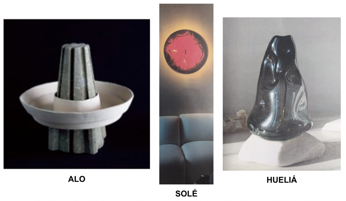 Solé. Se trata de una lámpara arbotante que toma como inspiración la leyenda mixteca que describe a un guerrero que derrotó al sol lanzándole una flecha que lo hizo sangrar y así conquistó un territorio clave para su pueblo. Estudiantes: María Fuentes, Andrés Mangino, Miguel Naime.