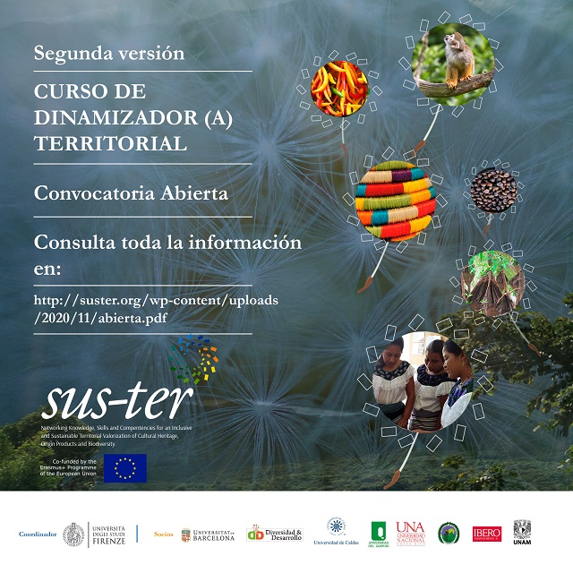 La convocatoria de la 2da Edición del Curso de Dinamizador(a) Territorial forma parte del Proyecto SUS-TER (acrónimo de ‘Red de conocimiento, habilidades y competencias para una valorización territorial inclusiva del patrimonio cultural, los productos de origen y la biodiversidad’), y surge por un acuerdo de la Unión Europea, como un consorcio de universidades de América Latina, Europa y una organización de Francia (Diversidad & Desarrollo).