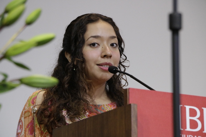 La Lic. María Teresa Cruz Barrientos, egresada de la Licenciatura en Sustentabilidad Ambientaly quien habló en representación de sus compañeros y compañeras, contó que aprendió en estos cuatro años de carrera “que no existimos de forma aislada, ni nuestras acciones nos impactan únicamente a nosotros mismos, somos parte de una extensa red que interactúa constantemente”.