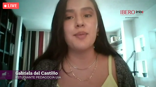 Gabriela del Castillo, alumna de la Licenciatura en Pedagogía, compartió que en un inicio pensaba que la interculturalidad era la interacción con las culturas, reconocer una cultura distinta a la propia, respetarla y tolerarla; “ pero me di cuenta que era mucho más que esto, y al ir revisando lecturas, me di cuenta de que era más ”.