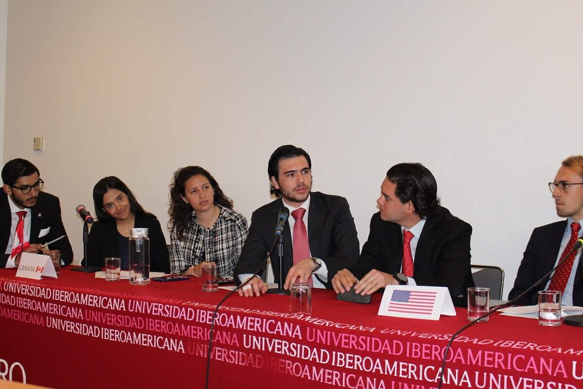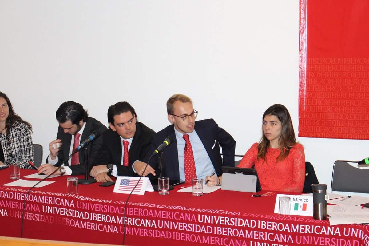 Alumnas y alumnos que cursan el cuarto y quinto semestre de la Licenciatura en Economíaen la Universidad Iberoamericana Ciudad de México simularon una mesa de renegociación del Tratado de Libre Comercio de América del Norte (TLCAN), como trabajo final de la materia Comercio Internacional.
