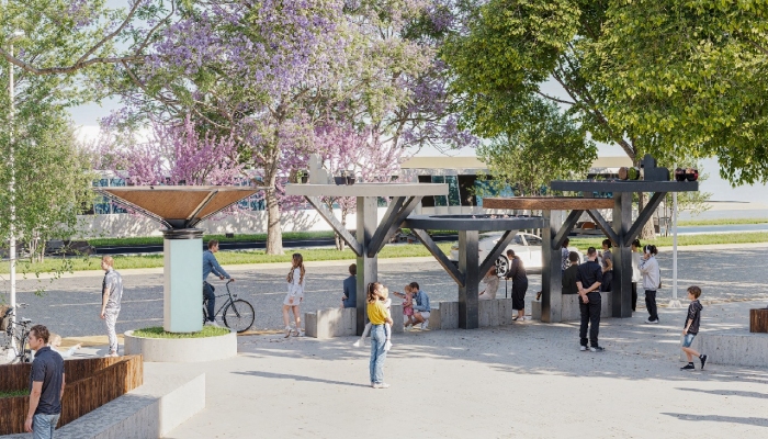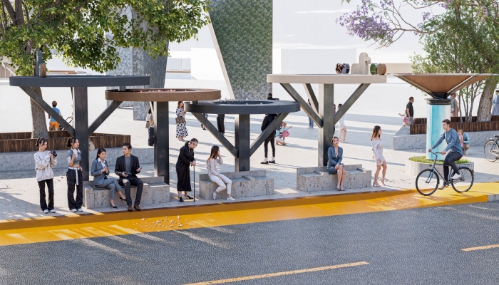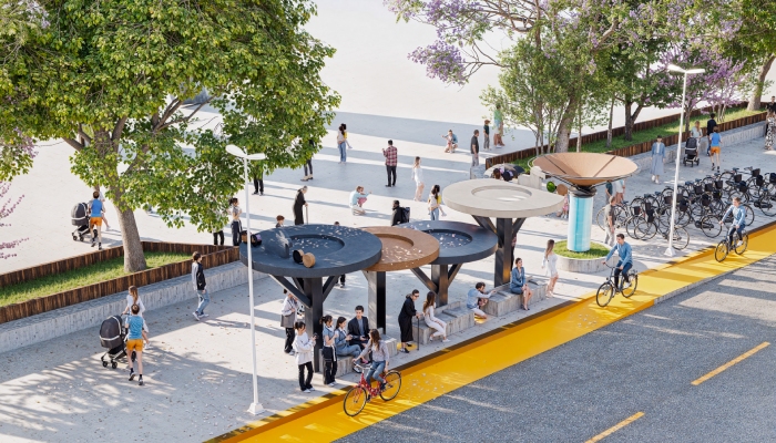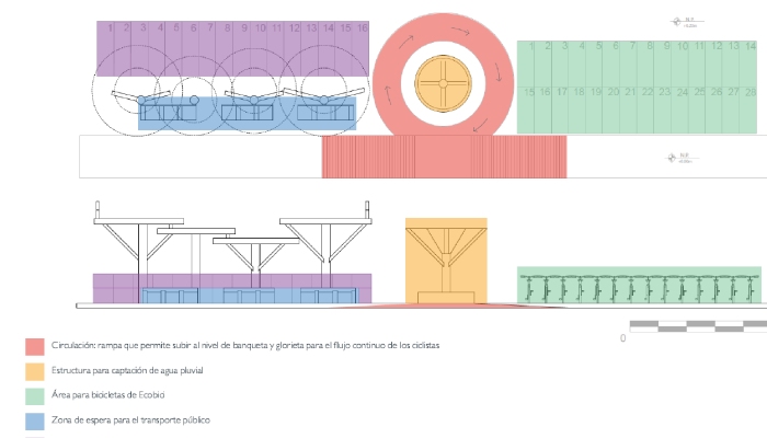 Se tiene contemplada una glorieta segura para las y los ciclistas y que en el centro se coloque una estructura de captación de agua pluvial con forma de paraguas invertido, con el objetivo de captar ese líquido y pueda ser tratado para usarse en el mantenimiento de los nodos de transporte y de las bicicletas.