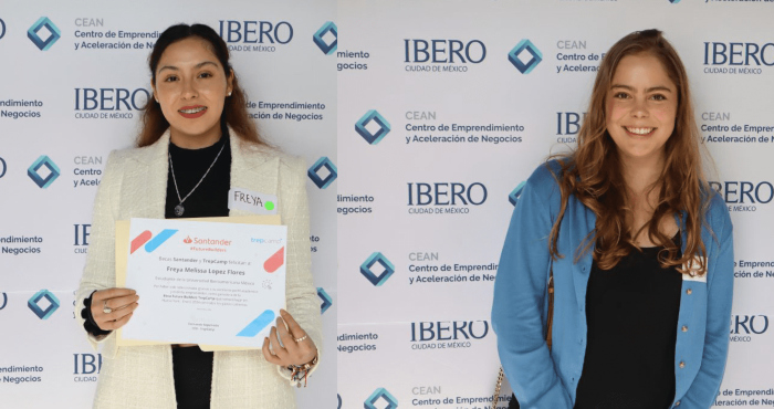 El pasado 13 de noviembre se dieron a conocer los resultados de la convocatoria Santander/Future Builders NY TrepCamp 2023, donde resultaron ganadoras dos estudiantes de nuestra IBERO, Freya Melissa López Flores, de la carrera de Actuaría, y Nicole Dobner Manzano, de Administración de Negocios Internacionales (actualmente Negocios Globales), quienes viajarán a Nueva York para capacitarse y mejorar sus competencias emprendedoras.