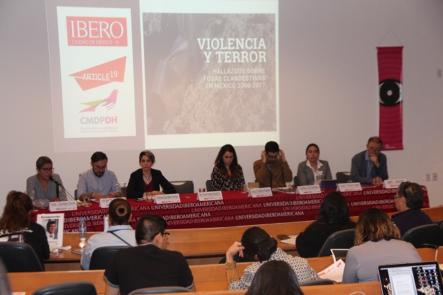 En la Universidad Iberoamericana Ciudad de México fue presentada una nueva investigación sobre fosas clandestinas, se trata del estudio:Violencia y terror. Hallazgos sobre fosas clandestinas en México 2006-2017, elaborado conjuntamente por el Programa de Derechos Humanos de la IBERO (PDH IBERO), la Comisión Mexicana de Defensa y Promoción de los Derechos Humanos (CMDPDH) y Article 19 Oficina para México y Centroamérica (Article 19).