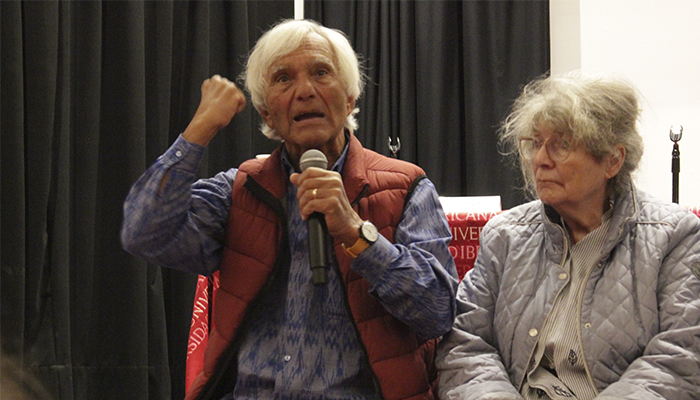 El director teatral Eugenio Barba, así como el elenco del espectáculo "Las Nubes de Hamlet", conformado por Antonia Cioaza, Julia Varley, Else Marie Laukvik, Eugenio Barba, Rina Skeel y Ulrik Skeel, ofrecieron una conferencia sobre teatro de grupo en la Universidad Iberoamericana (IBERO), como parte de las actividades realizadas por la Dirección de Difusión y Divulgación Culturalpara celebrar el 60 aniversario de la legendaria compañía Odin Teatret.