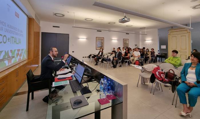 Ofrece una Conferencia Magistral en la Universidad Bicocca, de Milán, Italia, en la que destaca el “Compromiso de las Universidades con los Derechos Humanos”