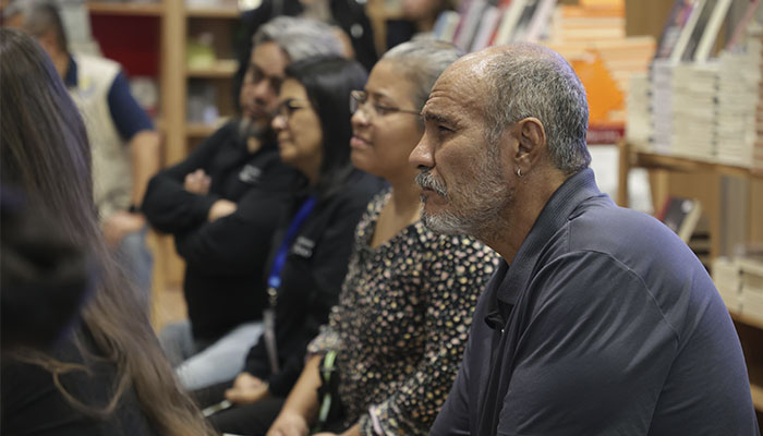 • La Dra. Tania Favela Bustillo, del Departamento de Letras de la Universidad Iberoamericana, presentó la edición definitiva de 'Migraciones: poema 1976-2020', de Gloria Gervitz, en el stand del Sistema Universitario Jesuita en la FIL de Guadalajara 2024.