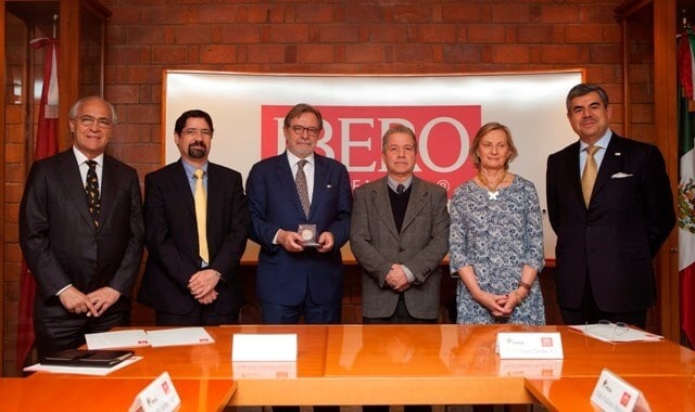 Auspiciados por Prisa, los cursos, diplomados y seminarios que se realicen en la Ibero generarán un vínculo de intercambio que fortalecerá y enriquecerá a ambas instituciones, subrayó el Rector, quien entregó a Juan Luis Cebrián Echarri la Medalla San Ignacio de Loyola en reconocimiento a su labor en la promoción de la democracia desde el trabajo periodístico, académico e intelectual.